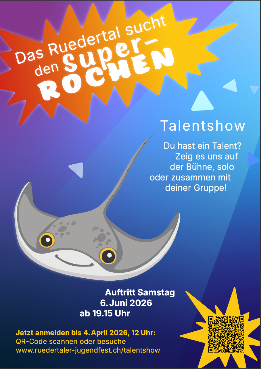 Du hast ein Talent? Zeig es uns auf der Bühne, solo oder zusammen mit deiner Gruppe, am Jugendfest 2026 in Schlossrued!